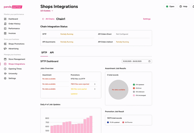 Assortment Files can be viewed in Shops Integration Plugin in Partner Portal. Moreover, you are able to download the files that have been uploaded and see the errors if there are any occurred on the item level.