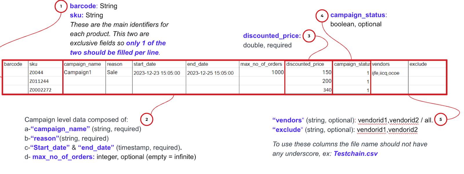 This format is designed to update promotions for a single vendor or store at a time. However, multiple promotions for the same vendor or store can be included, allowing you to create promotions for different dates within a single file.